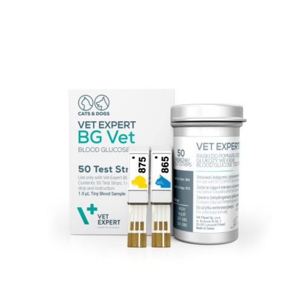 Strips are dedicated for glucometers Vet Expert BG Vet and Vet Expert BG Vet Pro (50 strips).
